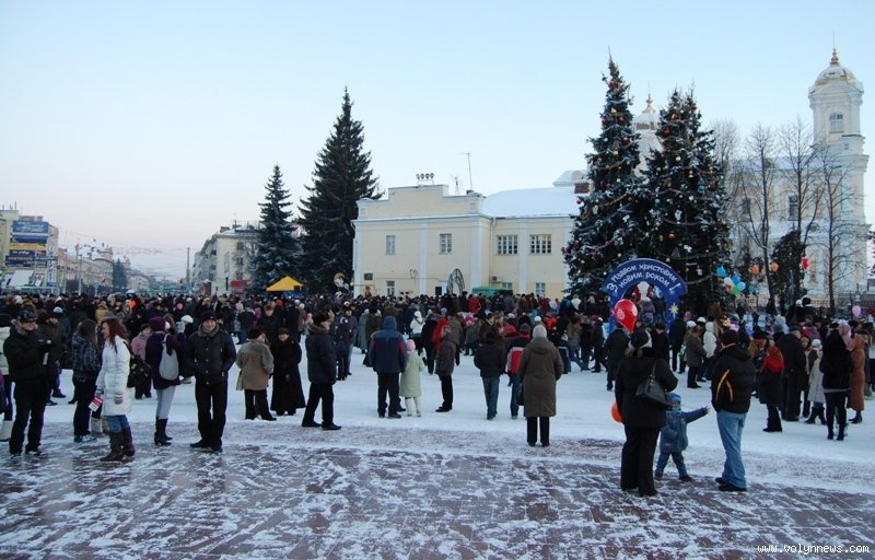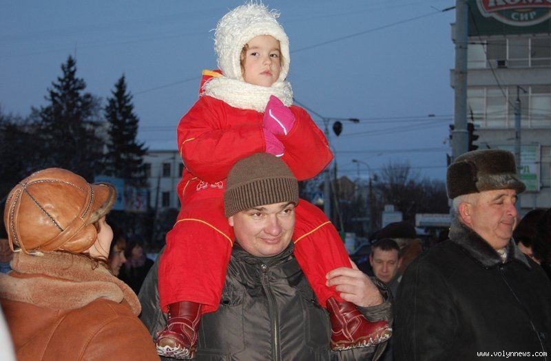 Запалити новорічні вогні на центральних ялинках обласного центру Волині 19 грудня традиційно прийшли представники міської і обласної влади, духовенство і лучани.