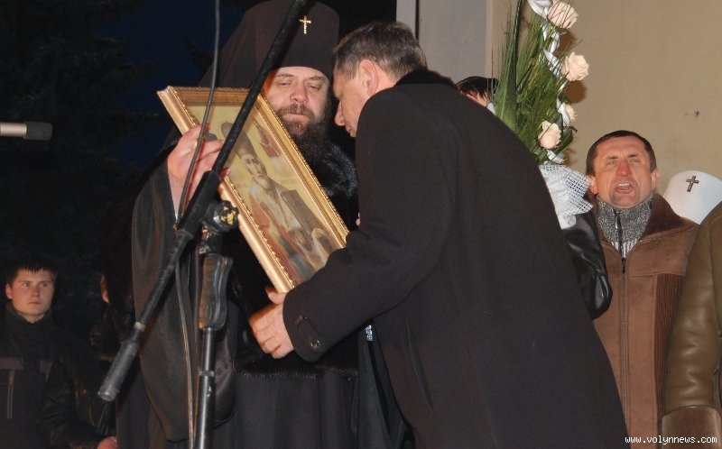 Архієпископ Луцький та Волинський Михаїл подарував луцькому меру ікону із зображенням святого Миколая.