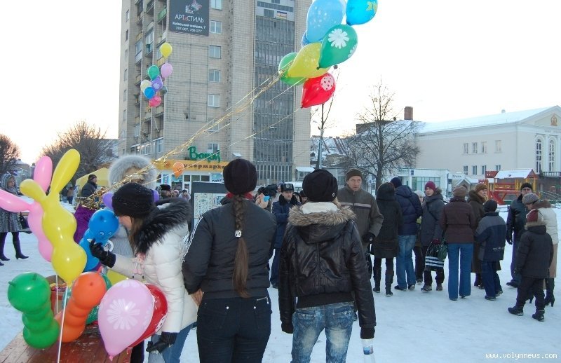 Під час дійства на Театральній площі молодь роздавала перехожим солодощі та рекламні листівки «Приватбанку», діти водили хороводи, а батьки спостерігали за святковим концертом фольклорних колективів.