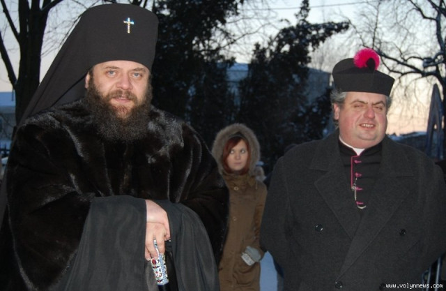 «Микола Ярославович носить ім’я на честь святого Миколая. Сьогодні він іменинник» - сказав владика Ніфонт. І додав, що молиться за Романюка, аби Бог укріпив його «на високому п’єдесталі керівника нашого міста».