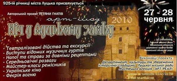 «Ми беремо на себе організацію заходу. Напевне, це вишуканий захід для вибраних, до якого можуть долучитися усі охочі. Крім того, ми розраховуємо не лише на молодь. «Ніч у Луцькому замку» буде цікава глядачам усіх поколінь», - переконує чиновник.