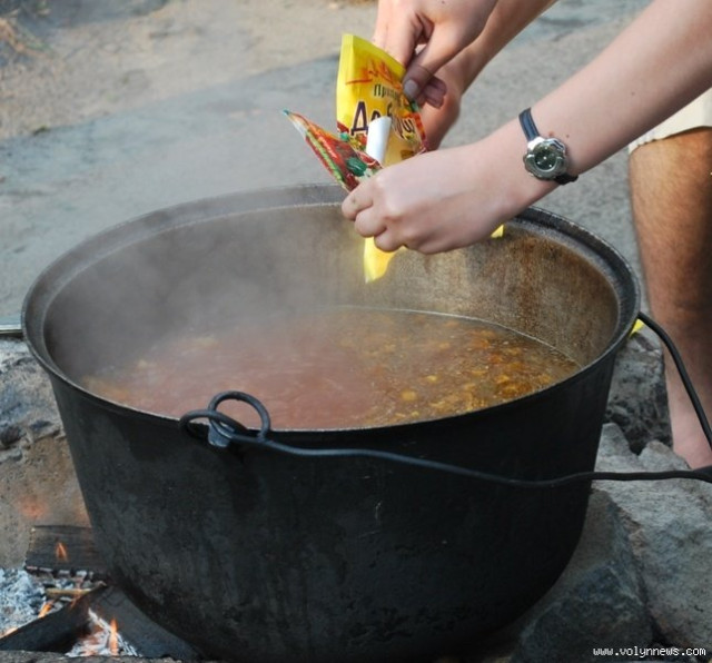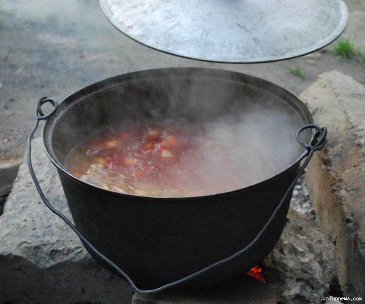Приблизно за годину, казан спустошують, проте на вогні ще готують борщ. Згідно з програмою, подавати його повинні були ще вдень, проте через дощ трапезу перенесли.