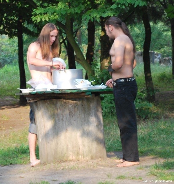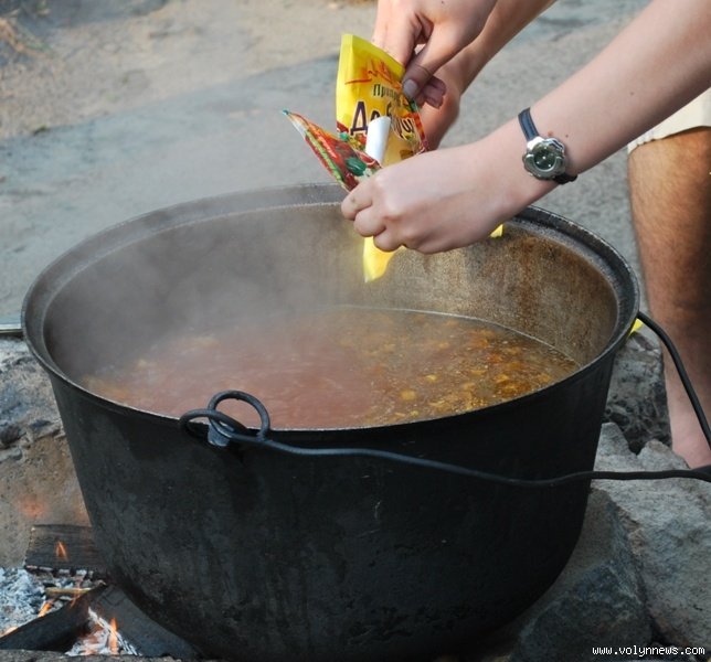 Близько до вечора в імпровізованому таборі починається вечеря. Подають куліш з пшоняної каші, шкварок та масла. Страву готувала місцева ґаздиня музею декілька годин на вогні.
