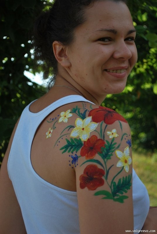 Дівчат розмальовують переважно квіточками. Тату з фарби наносять на шию, плечі, обличчя та навіть животи. Мистецтво на тілі житиме до опівнічного купання.