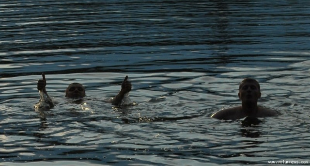 Коли заходить сонце, на березі ставка підпалюють декорації. Палки, на які натикані рулони туалетного паперу, чимось нагадують кадри з популярного реаліті-шоу «Останній герой», коли учасники йшли обирати жертву на виліт.