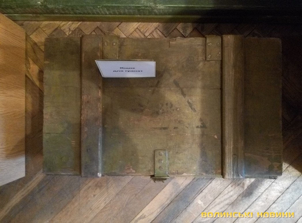 Маленькі моделі тогочасних австроугорських, німецьких та російських вояків, англійські та французькі каски, зразки холодної зброї, австрійські штики, ручні гранати того часу, перші протигази, солдатські фляжки та інші унікальні археологічні знахідки того часу, знайдені під час археологічних розкопок в Луцьку.