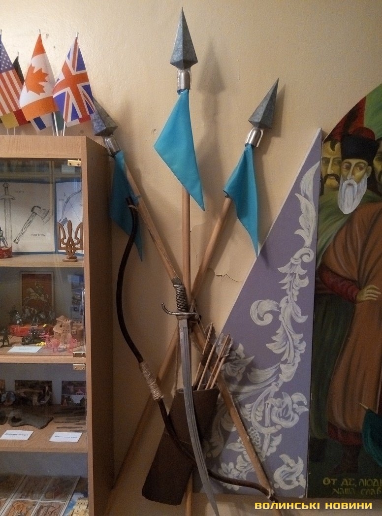 Цікаві зразки козацького озброєння, картина із зображенням величних козацьких Гетьманів, унікальні документи та археологічні знахідки з місць боїв козаків з поляками під Берестечком, кулі для козацьких пищалів, цвяхи, монети часів козацтва, маленькі моделі самих козаків, прапор Волинського реєстрового козацтва, прапор Волинської області, а також сучасний український прапор із зони проведення АТО, підписаний сьогоднішніми українськими Героями.