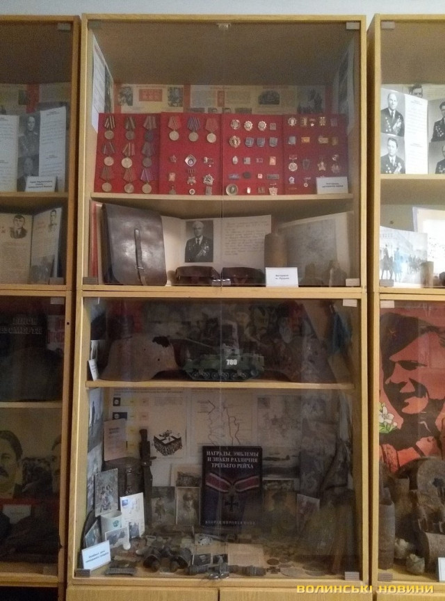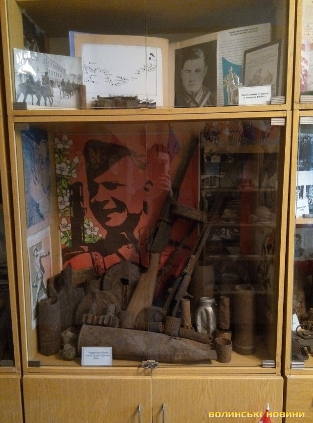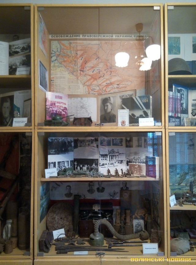 Уламки стріл та списів, ядра для катапульт, зразки амуніції та обмундирування, пробиті кулями каски, стрілецька зброя, унікальні документи, фотографії, портрети Героїв, а також лист до учнів школи, особисто підписаний рукою легендарного Олексія Марєсьєва – все це протягом довгих років збирав і продовжує збирати вчитель історії колишньої Луцької загальноосвітньої школи № 8, а нині Луцького навчально-реабілітаційного центру для дітей з особливими потребами, Віктор Гуляницький.