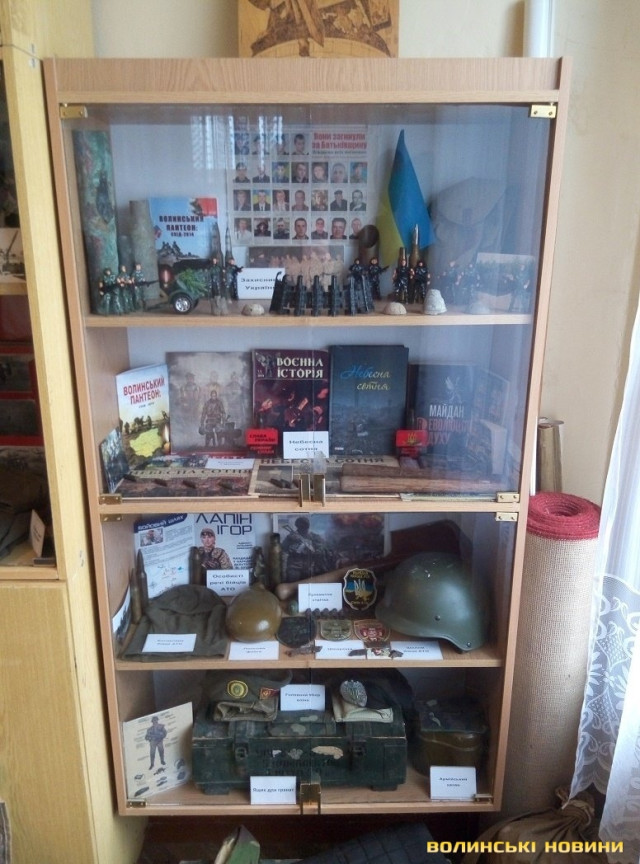 Тут розміщені унікальні експонати амуніції активістів Майдану, фотографії загиблих Героїв, синів Волині. «Скоро один з наших вояків на сході, колишній учень восьмої школи, обіцяв привезти для експозиції музею шеврони українських військових підрозділів, які тримають оборону на сході», - зазначив Віктор Гуляницький.