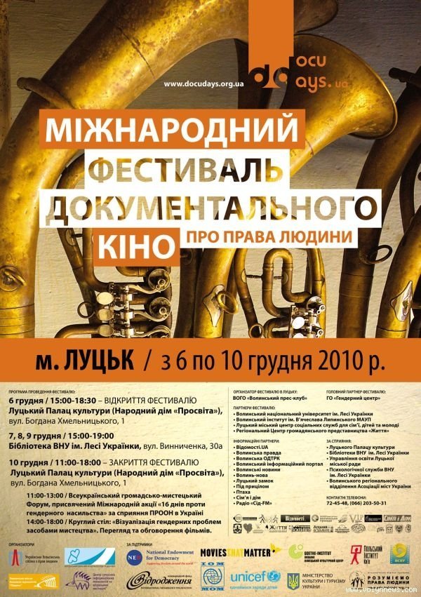 З 6 по 10 грудня у Луцьку відбудеться перегляд і обговорення фільмів VII Міжнародного фестивалю документального кіно про права людини Docudays UA.