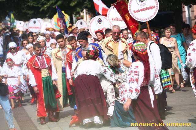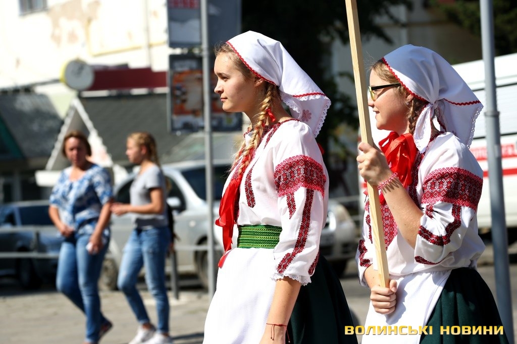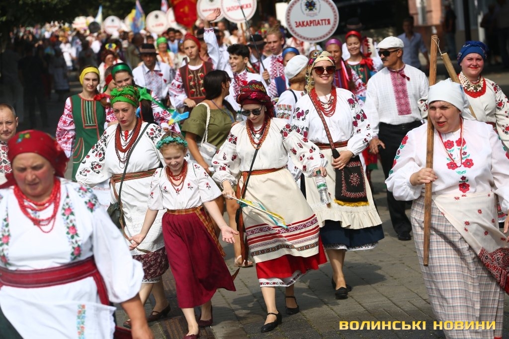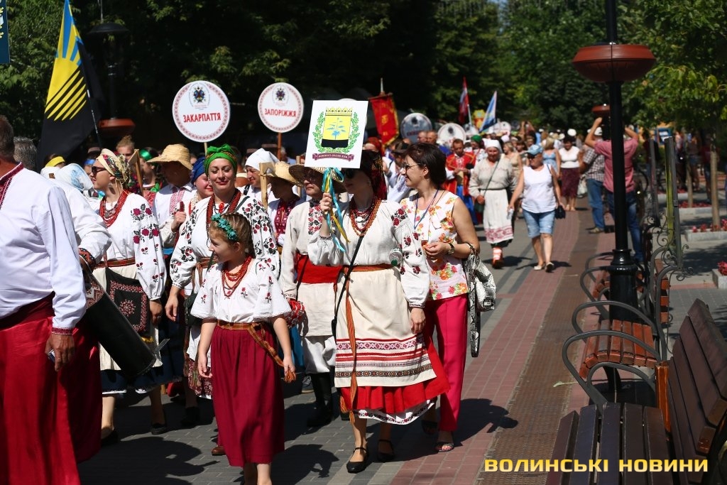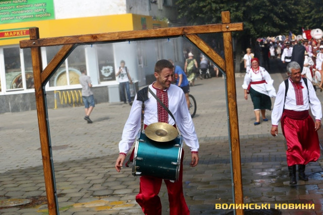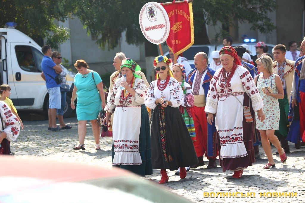 Перед початком ходи учасники фестивалю та представники обласної та міської влади поклали квіти до фотостенду Героїв Небесної Сотні та Героїв АТО. Колона вирушила з Театрального майдану вулицею Лесі Українки. Серед учасників фестивалю – представники різних регіонів України, а також колективи з Франції, Словаччини, Білорусі, Словенії.