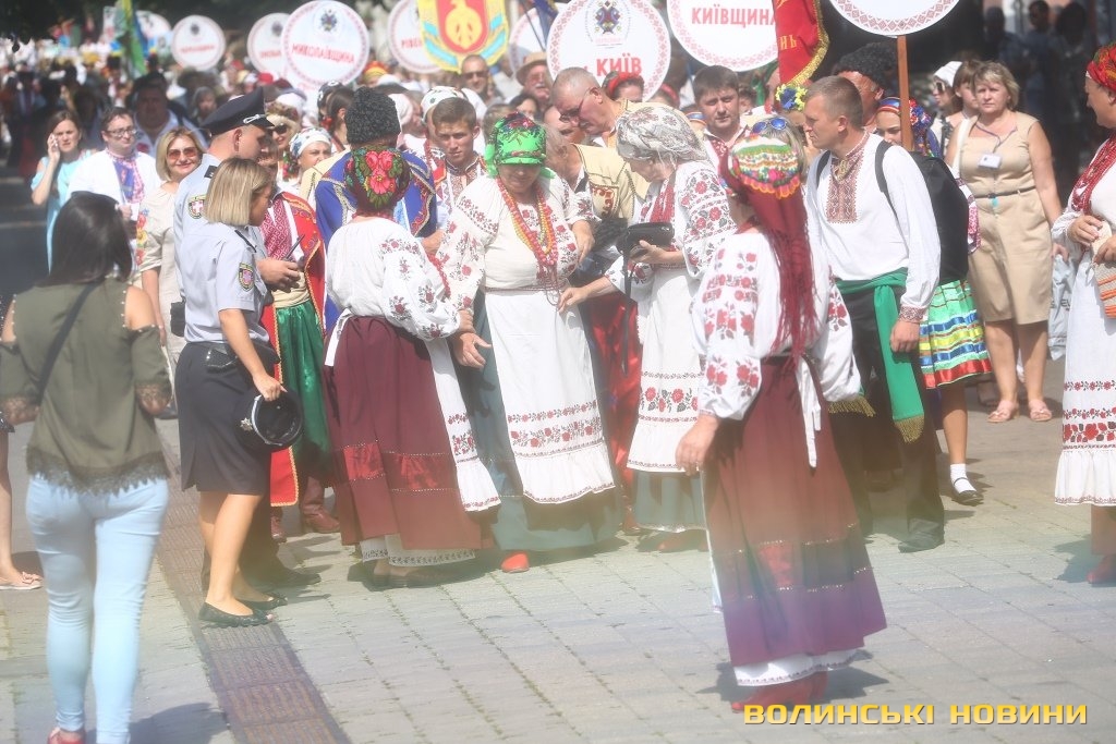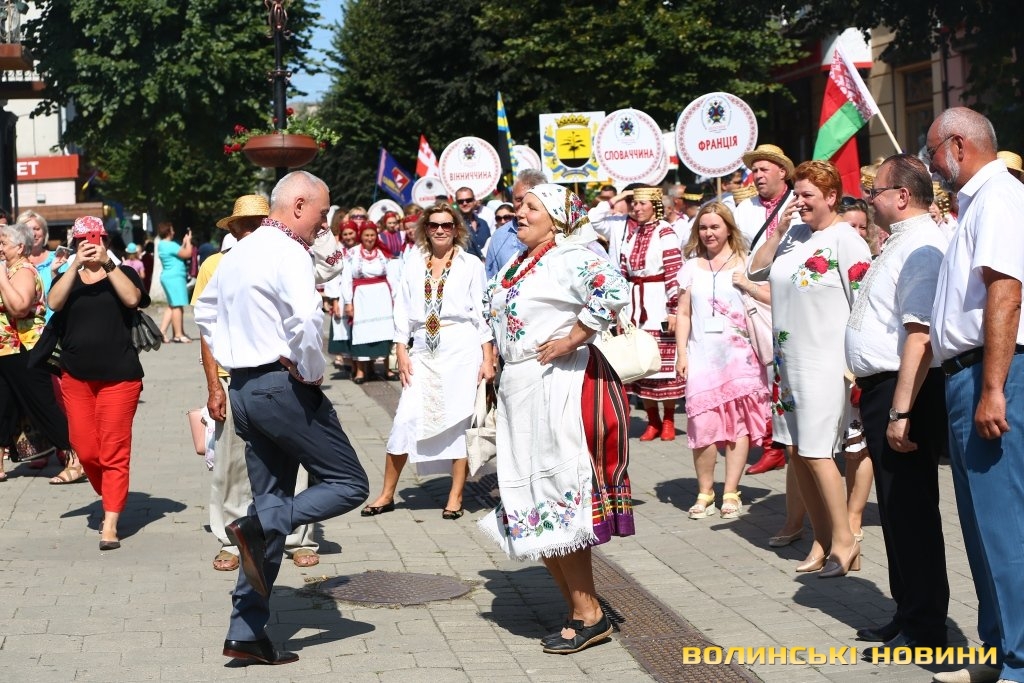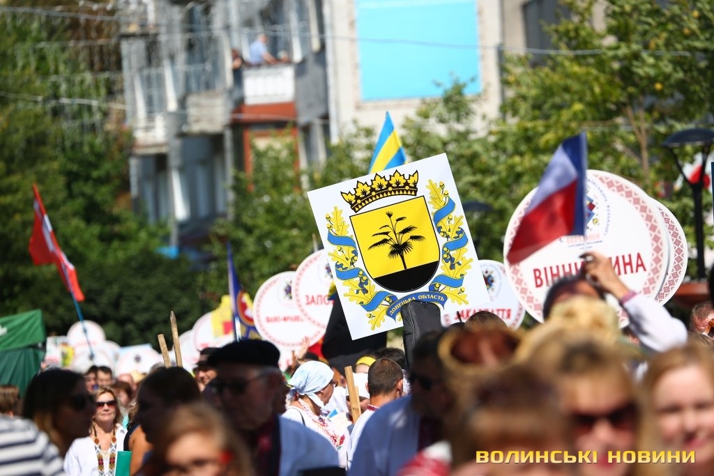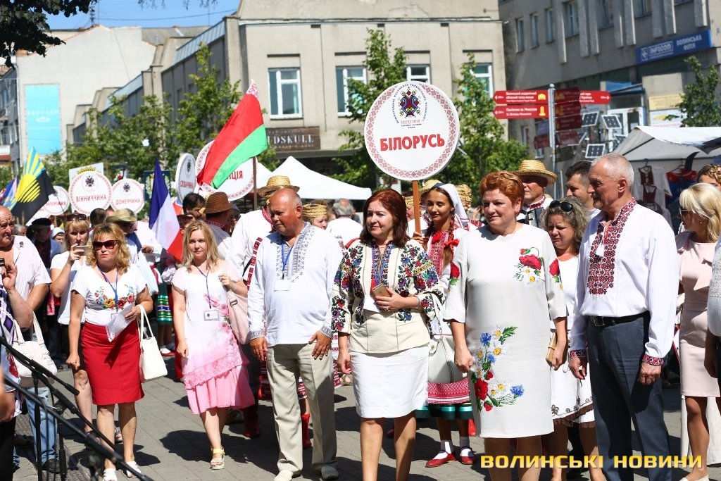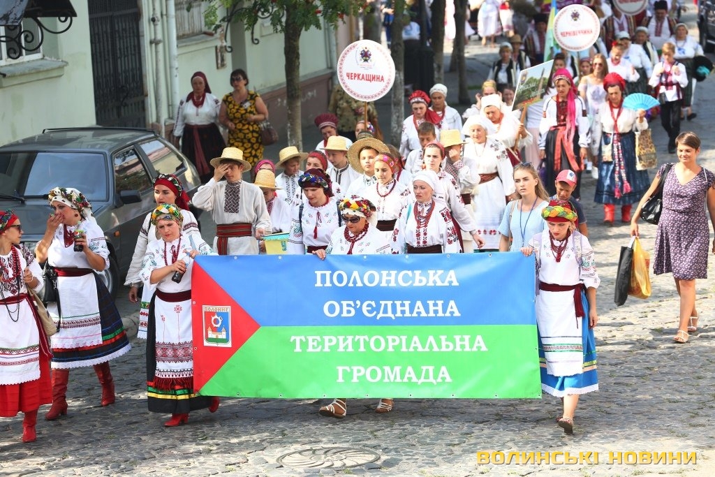 Перед початком ходи учасники фестивалю та представники обласної та міської влади поклали квіти до фотостенду Героїв Небесної Сотні та Героїв АТО. Колона вирушила з Театрального майдану вулицею Лесі Українки. Серед учасників фестивалю – представники різних регіонів України, а також колективи з Франції, Словаччини, Білорусі, Словенії.