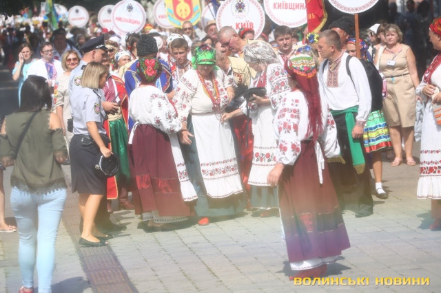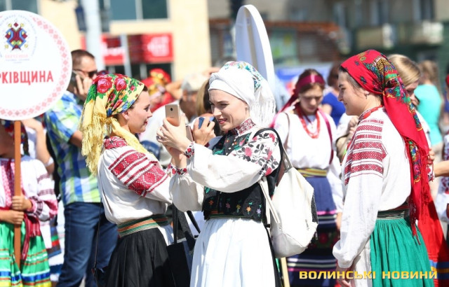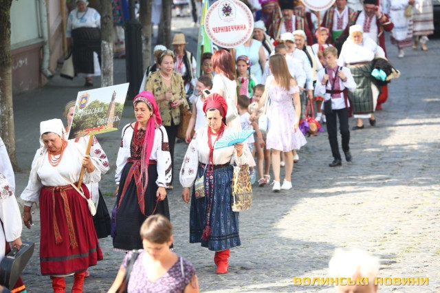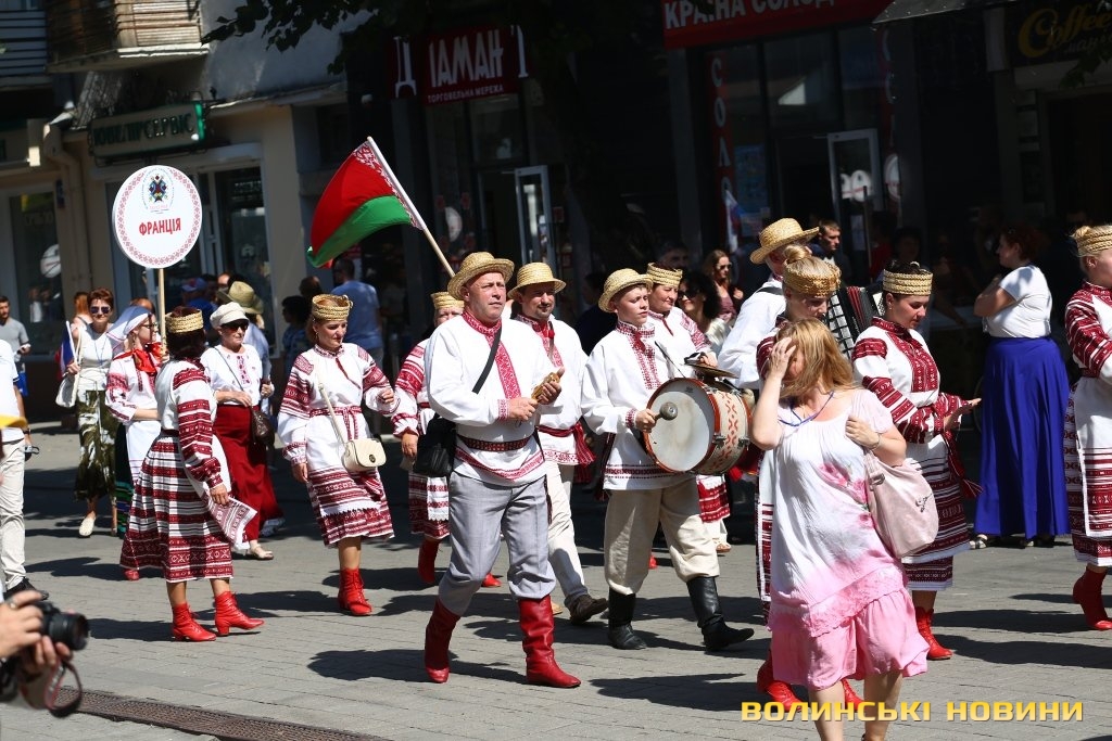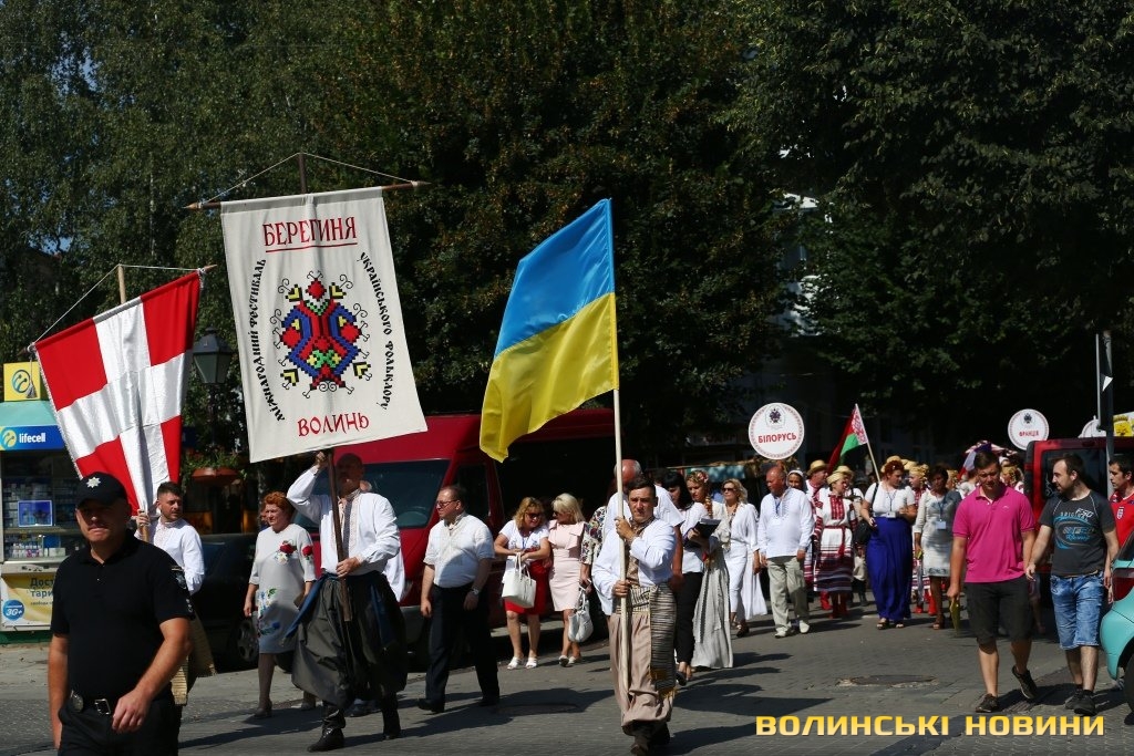 Барвистою ходою під звуки народних пісень крокували гості та учасники восьмого міжнародного фестивалю українського фольклору «Берегиня» центром Луцька.