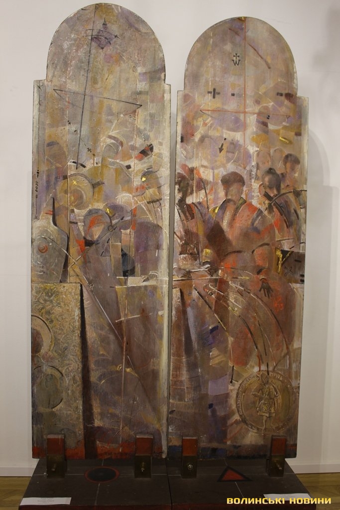 «Ми поєднали двох художників, які різні за віком, за життєвим досвідом, але їх обʼєднує любов до України, знання історії, виключний смак виражальних засобів сучасного мистецтва. Так, Дмитро не переказує сюжет, не переповідає історію, а у своїх торах передає її суть, дух минувшини. Тому його твори інші, нагадують старі понівечені ікони. Тема лицарства була провідною у його творчості, саме тому багато творів присвячені українським лицарям: Богдану Хмельницькому, гетьману Мазепі, козацтву. Кожен його твір – це історія, сторінка поезії, дух України. Катерина ж працює по-іншому, в стилі львівської мистецької школи, вона прив’язується до технік народного мистецтва, але наповнює це сучасним звучанням. Вона вміло продовжує ідеї Дмитра», - наголосила Зоя Михайлівна.