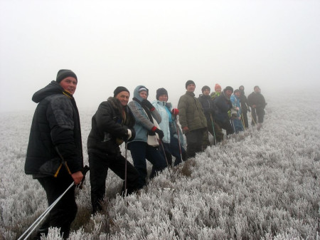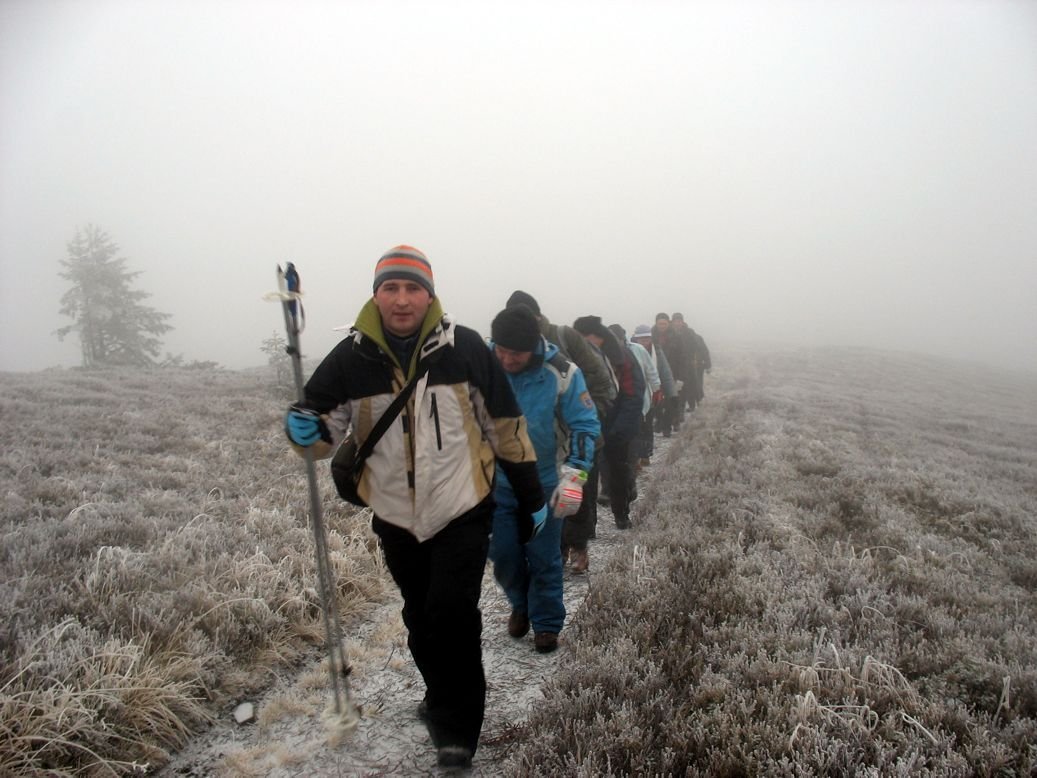 Похід видався не з легких. Чим вище піднімалась група, тим суворіше випробувала туристів і погода. Штормовий вітер зі снігом додавав чималих труднощів. Врешті, коли першу вершину підкорили, швидко розгорнули прапори біля тригонометричного пункту геодезичної мережі для групового фото, і не затримуючись, вирушили далі.
