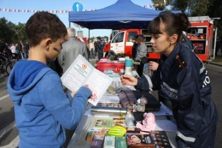 Традиційно перед глядачами виступили помічники рятувальників – Дружина юних пожежних ЗНВК №88 команда «ЩИТ». Ці яскраві виступи дуже корисні, особливо для маленьких глядачів, тому що необхідну інформацію передають дітям за принципом «рівний-рівному». Саме це сприяє кращому сприйняттю дітьми правил безпеки життєдіяльності. Співробітники ДСНС організували багато конкурсів для дорослих і дітей, а після нагороджували їх пам’ятними призами. Крім того, кожній дитині фахівці служби порятунку виписували «Посвідчення юного рятувальника», яке діти могли заповнити пройшовши всі станції, які розмістили по всьому містечку.У рамках акції «Запобігти. Врятувати. Допомогти» відбулася виставка пожежно-рятувальної техніки, яку використовують у повсякденній бойовій роботі. Всі охочі могли сфотографуватися біля червоних велетнів та посидіти за кермом «підкорювачів вогню», уявивши себе справжніми рятувальниками.