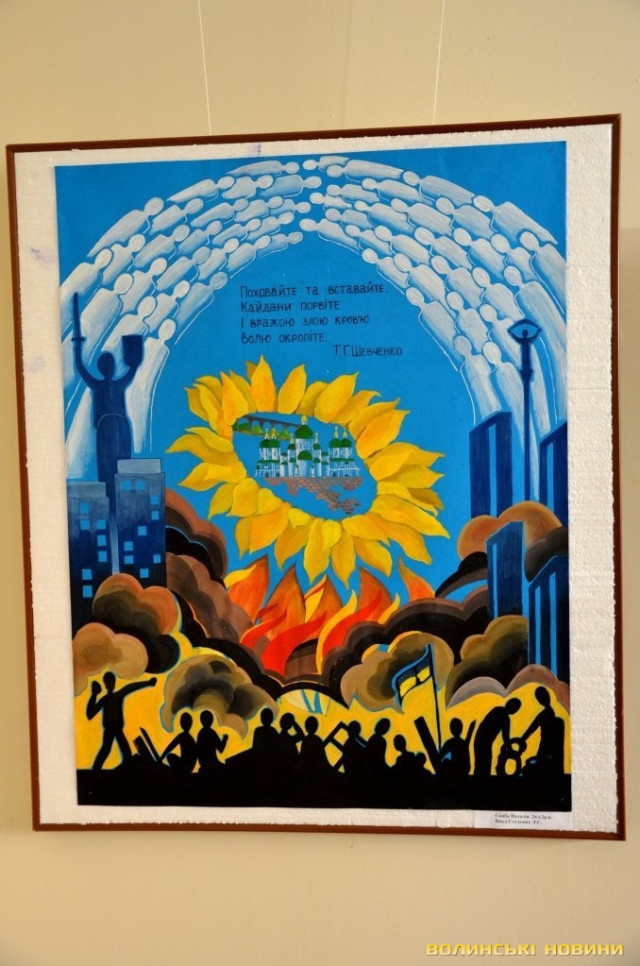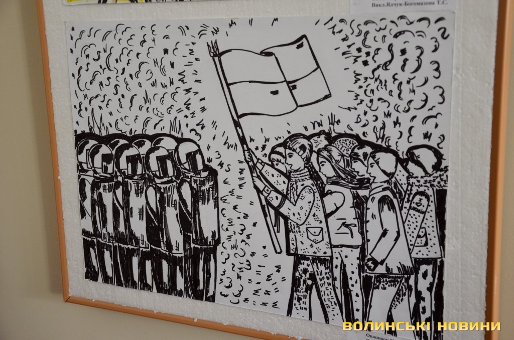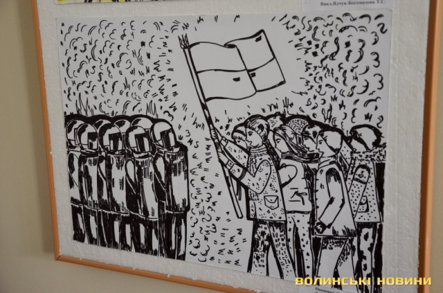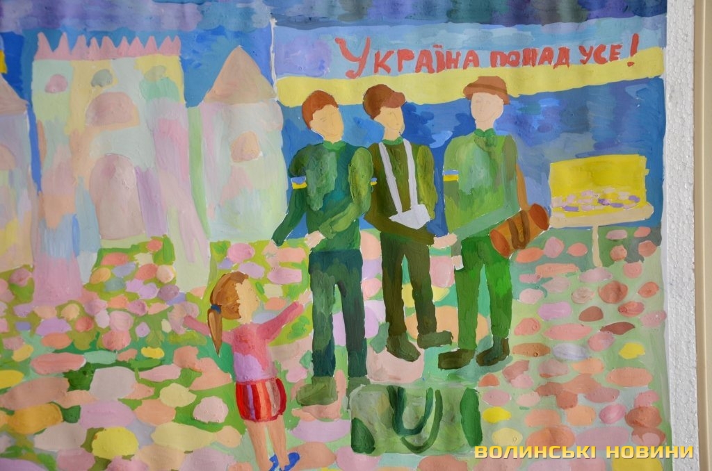 Начальник управління культури Волинської облдержадміністрації Валерій Дмитрук звернув увагу на те, що відкриття виставки відбувається у дуже зворушливій атмосфері, адже ще рік тому ніхто не міг уявити виставку на подібну тематику, адже ми жили у мирі. Тема робіт торкається душі кожного патріота, адже на малюнках можна побачити тризуб та синьо-жовтий стяг. Він закликав дітей пишатися тим, що вони українці.