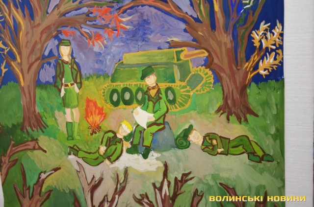 Побачивши роботи юних лучан, він не зміг стримати емоцій, адже практично на кожному малюнку – сльози матерів та голуби миру, що свідчить про те, що ми мирна нація, ніколи не були загарбниками, але готові дати гідну відсіч будь-кому. Боєць зізнався, що у більшості його побратимів дитячі малюнки, які їм надсилають, носять разом з іконками біля серця, як оберіг. Він назвав такі малюнки величезною моральною підтримкою, завдяки якій вояки знають, що воюють перш за все заради того, щоб діти ніколи не знали слова «війна», не бачили сліз на очах матерів, які оплакують своїх синів.