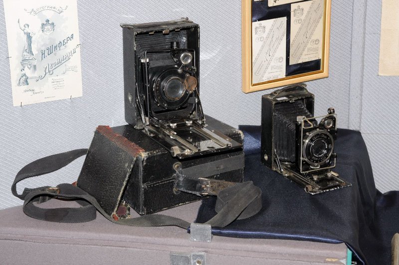 Світлина, увійшовши в культуру заможних людей, одразу посіла місце родинних реліквій, які передавалися з покоління в покоління.У нижній частині вітрини представлена література по фотосправі початку ХХ століття і фотоапарати першої половини ХХ століття.