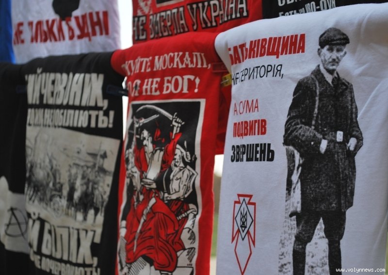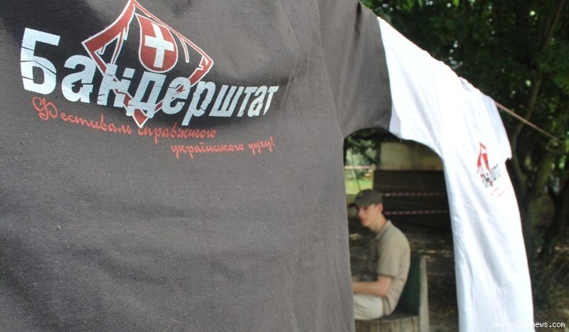 Футболки з емблемою «Бандерштату» коштували 50 гривень. Червоно-чорні стрічки, як символ армії УПА продавали по п’ять.