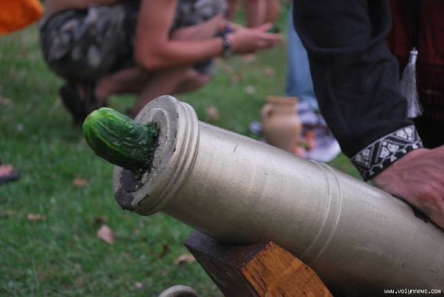 А козаки на чолі з директором музею Олександром Середюком розважалися, стріляючи з гармат огірками.