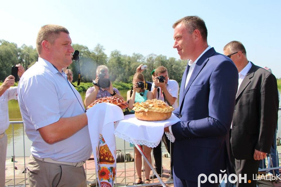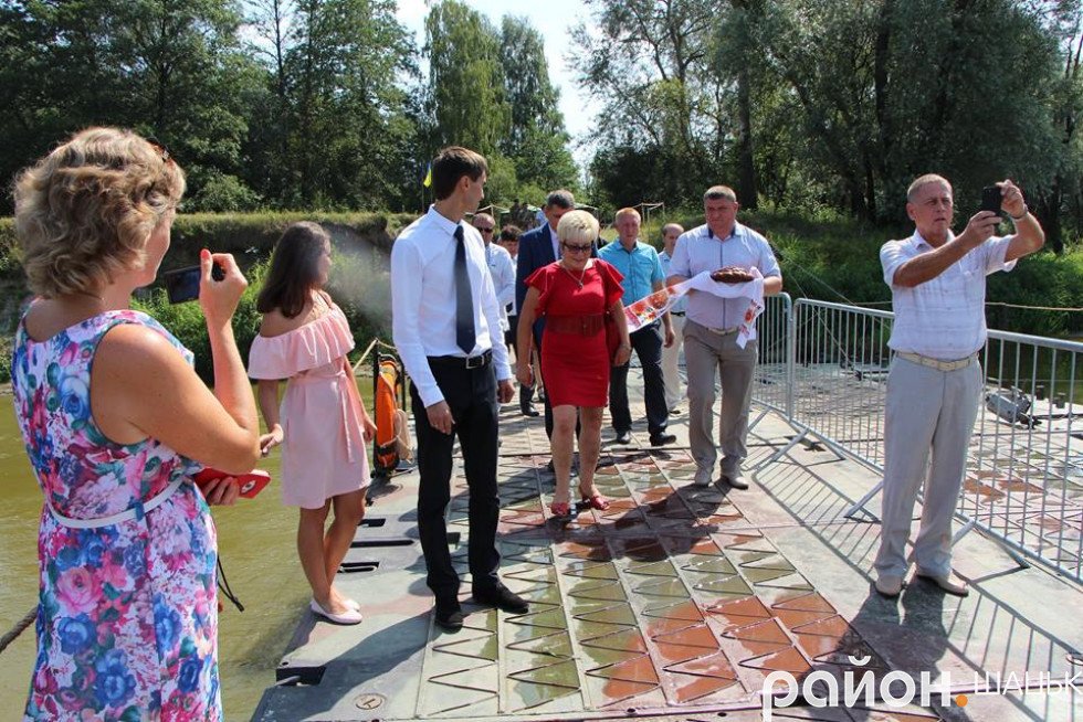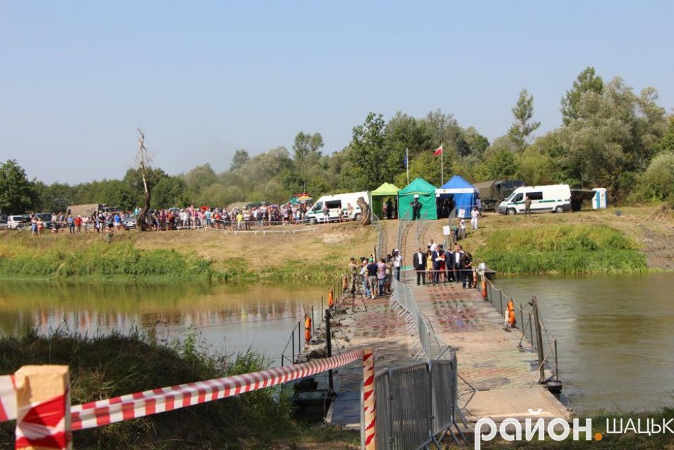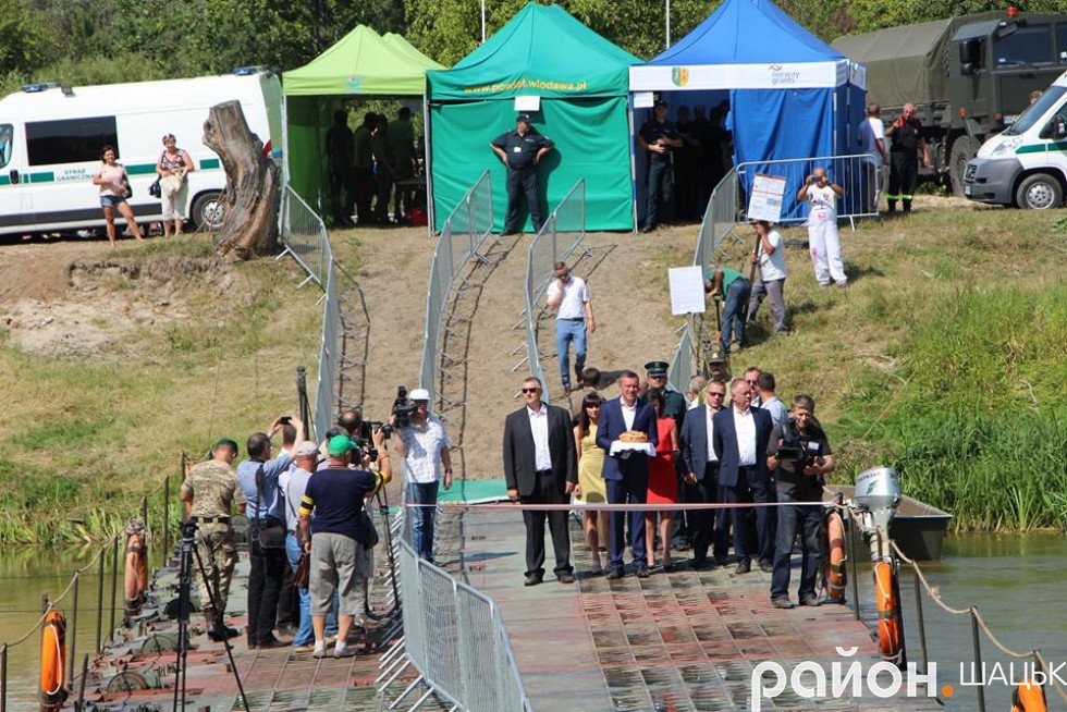 На понтонному мосту, що з’єднує території українського села Адамчуки і польського Збереже, зустрілися делегації двох країн, міцно потиснули руки, обмінялися короваями і перерізали символічну стрічку.