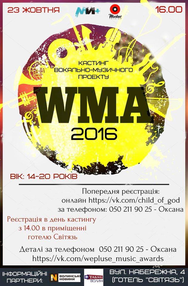 23 жовтня 2016 року о 16:00 в приміщенні готелю «Світязь», що на вулиці Набережна, 4, відбудеться кастинг на наймасштабніший у місті вокальний конкурс Weplus Music Awards.