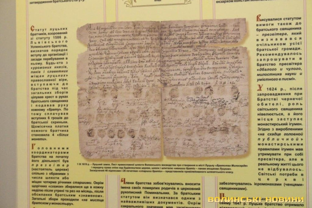 Про Музей історії Луцького братства, своєю чергою, розповіла його завідувачка, провідний науковий працівник Волинського краєзнавчого музею Олена Бірюліна.Вона зазначила, що це єдиний український музей, присвячений історії окремої братської організації, приміщення якого знаходиться в колишньому братському монастирі.