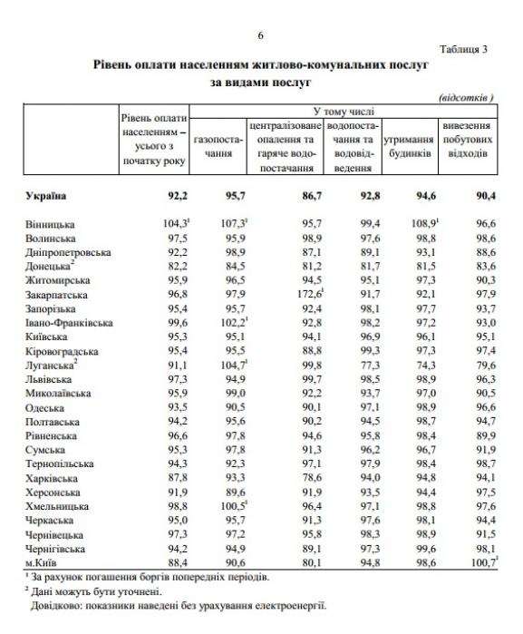 Детальніше про області-боржники в таблиці Держстату: