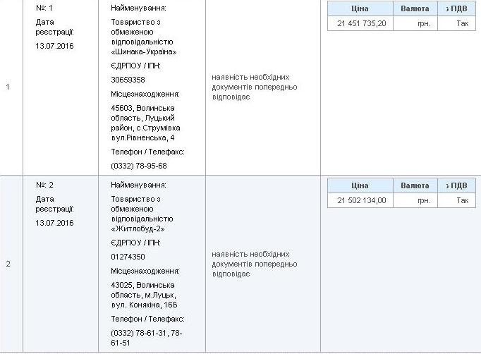 Згідно з результатами конкурсних торгів, будівельні роботи за 21 мільйон 451 тисячу гривень виконає Товариство з обмеженою відповідальністю «Шинака-Україна».
