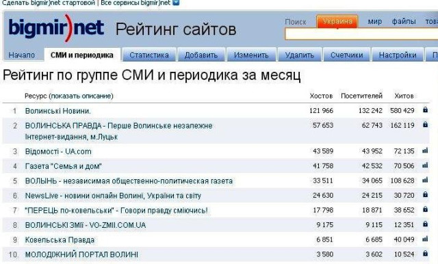 Тільки маленьке зауваження ВН перші не лише серед новинних сайтів а серед всіх сайтів Волині;)