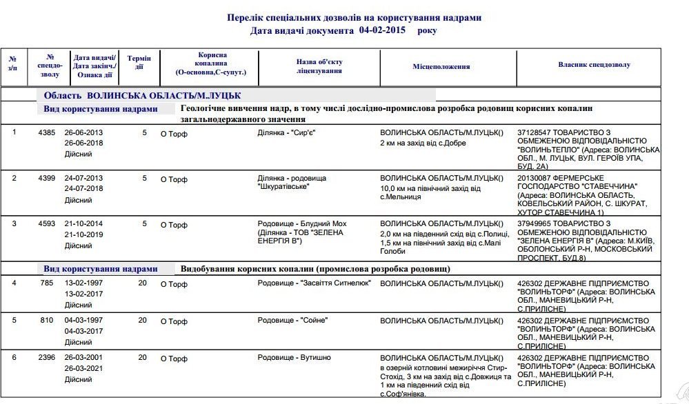 Дані про власників усіх родовищ Волині – у відкритому доступі. СПИСОК
