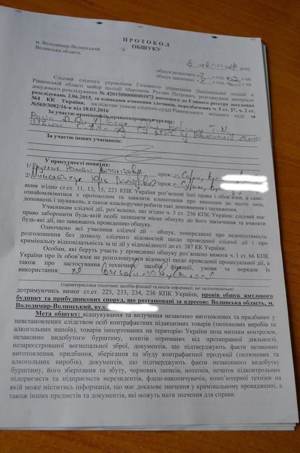 У коментарі Інформаційному агентству Волинські Новини він зазначив, що обшук відбувався на виконання ухвали Рівненського суду.