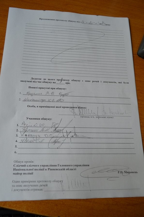 «Дійсно, зранку прийшли з ухвалою Рівенського суду працівники управління поліції. Провели в моїй оселі обшук. Він тривав півтори години. Під час обшуку речей та документів не виявили», – зазначив Саганюк.