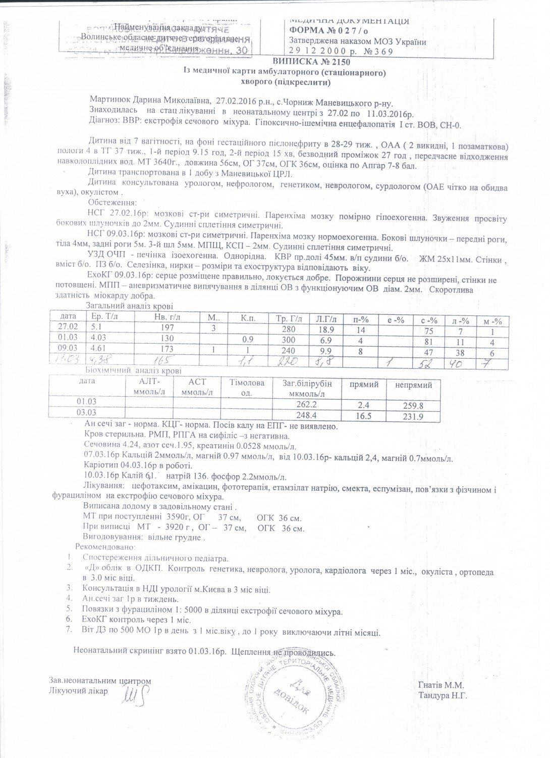 Даринка Мартинюк народилася 27 лютого у селі Чорниж Маневицького району. Дівчинці з першого дня народження поставили страшний діагноз: ВВР: екстрофія сечового міхура, гіпоксично-ішемічна енцефалопатія І ст. ВОВ, СН-0. Якщо пояснити простими словами, то вона народилася практично без сечового міхура.