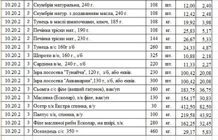 Чаї та кава обійдуться у 285,9 тисячі гривень. Молочні продукти - у 621,5 тисячі гривень. Рибних продуктів закупили на 363 083 гривень.