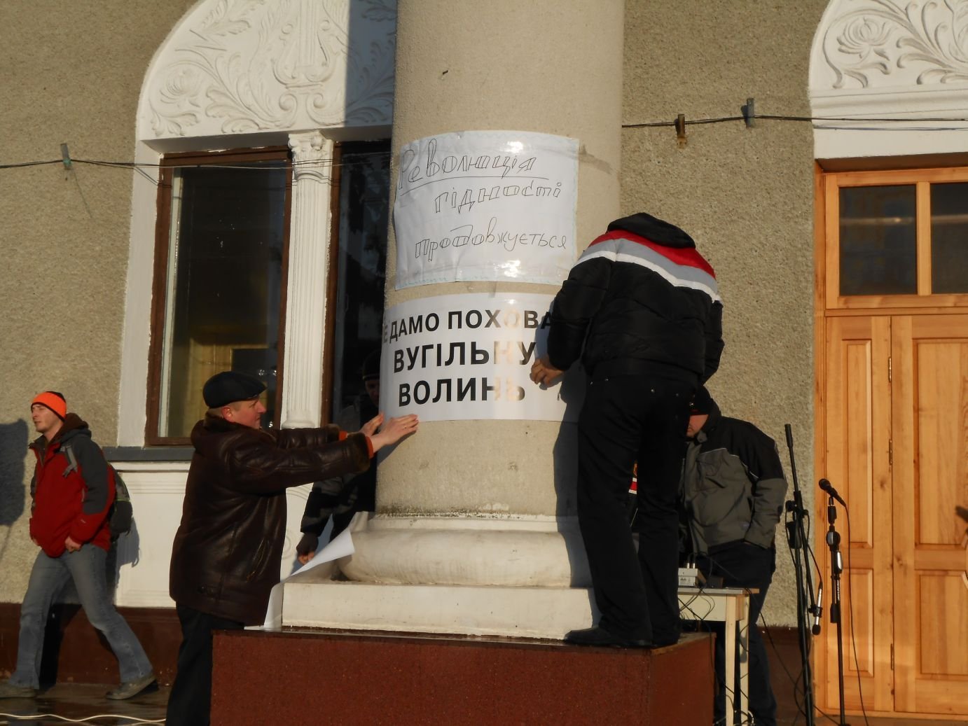 Також шахтарі зачитали чергове звернення до посадовців з вимогами: не закривати 1 та 9 шахти, добудувати шахту №10 «Нововолинська», переглянути Держбюджету у частині виділення коштів на вугільну галузь Волині та не застосовувати санкції до шахтарів, які беруть участь у мітингах.