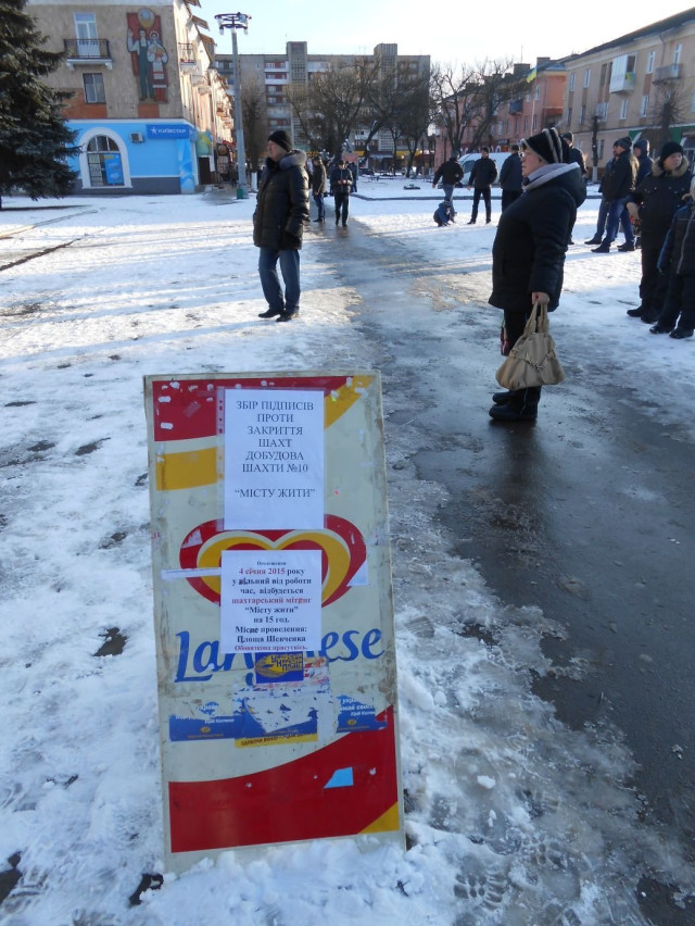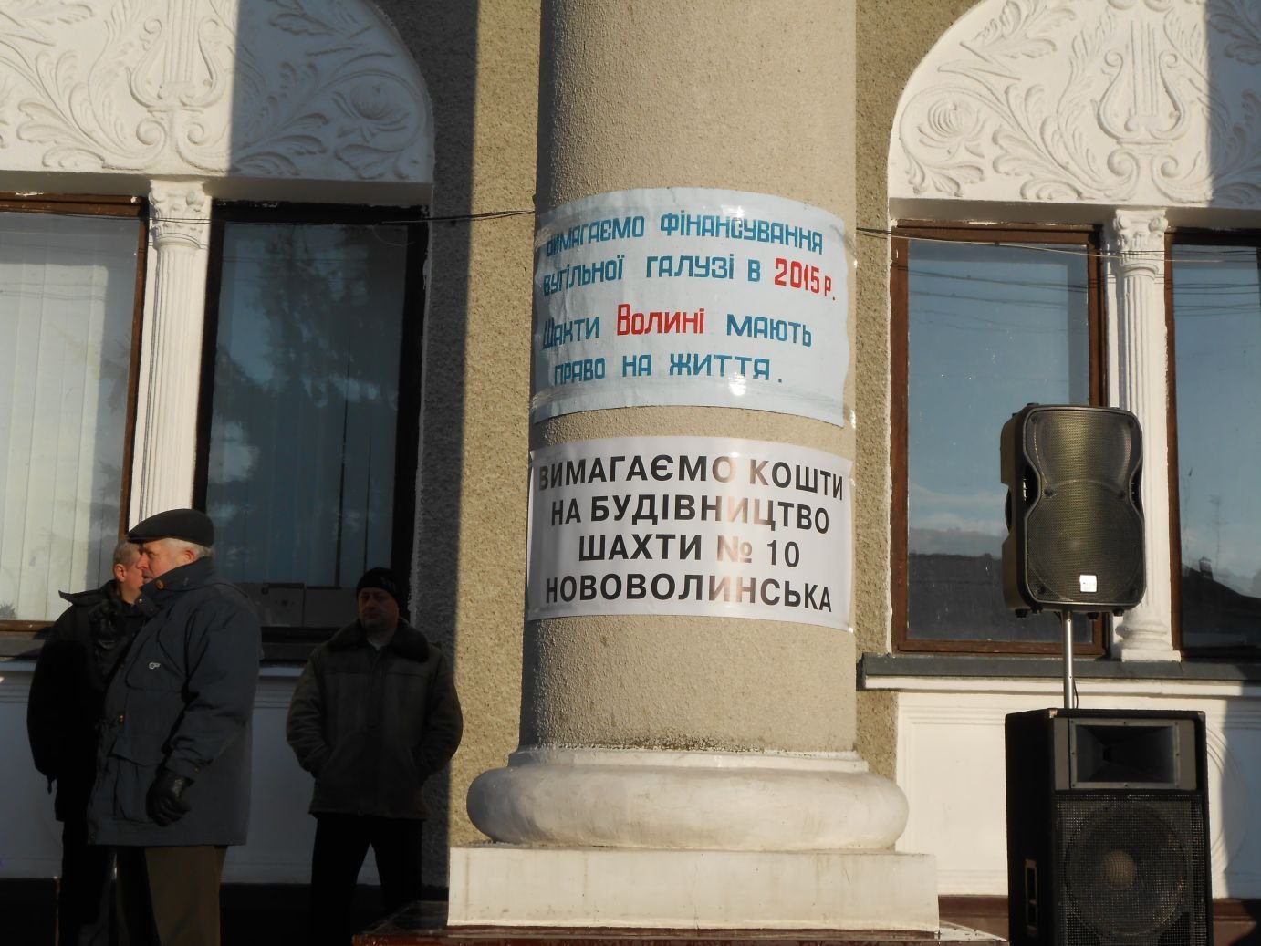 На перший у 2015 році мітинг під назвою «Місту жити» прийшло до тисячі шахтарів та небайдужих жителів міста. До колон будинку культури прикріпили транспаранти з гаслами: «Революція гідності продовжується», «Не дамо поховати вугільну Волинь», «Вимагаємо фінансування вугільної галузі у 2015 році», «Шахти Волині мають право на життя», «Вимагаємо кошти на будівництво шахти №10 «Нововолинська», «Дайте можливість працювати шахтарям Волині», «Вор должен сидеть в тюрьме», «Віддайте нам зарплату!!!».