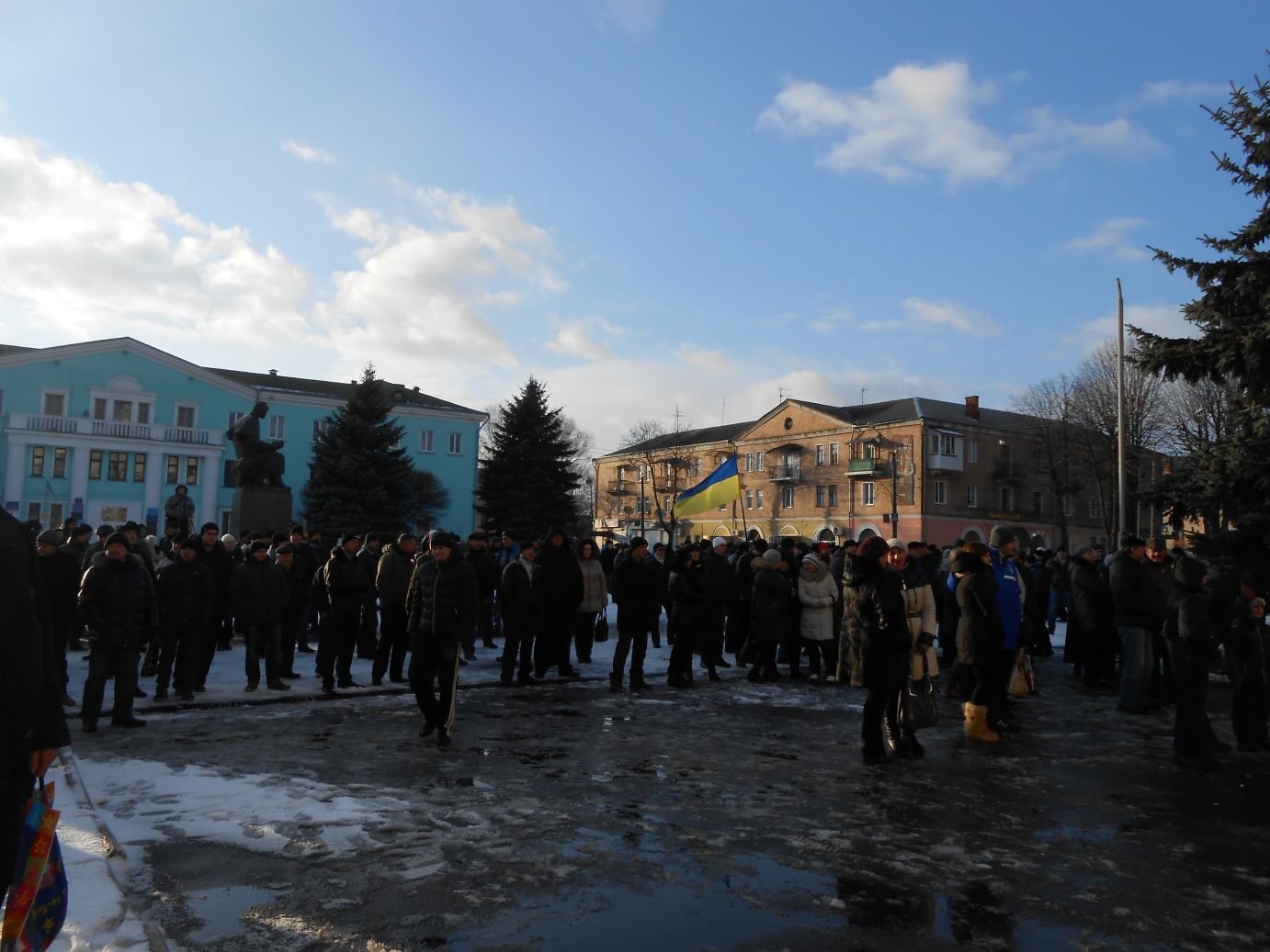 ДОБРОМ не завершують! А тепер що.... " Допоки до мікрофона йшов мер Нововолинська Віктор Сапожніков із натовпу лунали крики «Ганьба».