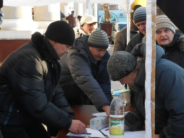 Поруч у наметі збирали підписи проти закриття шахт, а також записували скарги громадян та їх пропозиції щодо розвитку міста, області й Україні. Охочих поставити свій підпис було чимало і до намету вишикувалася черга. Згодом організатори мітингу повідомили, що зібрали 20 аркушів з підписами, які передадуть вищому керівництву держави.