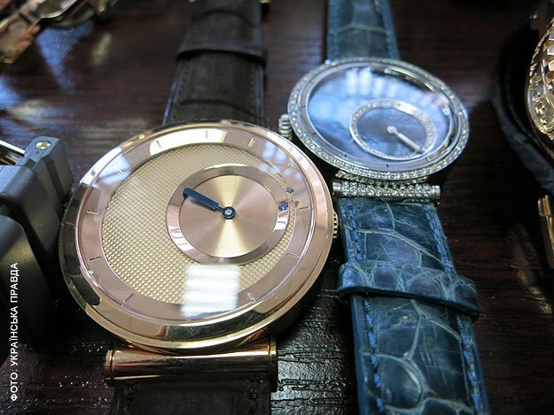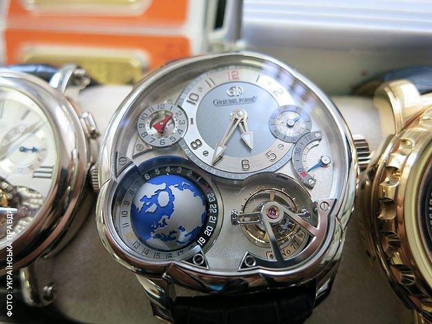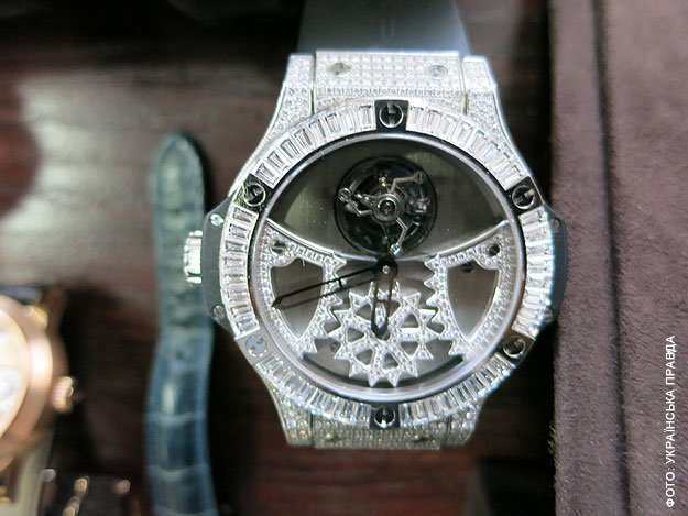 Ціни можуть шокувати непідготовлених людей. Цей годинник ексклюзивного швейцарського виробника Greubel Forsey (Гробель Форсі) коштує... 600 тисяч доларів.При чому це - не єдиний аксесуар такої вартості в колекції екс-міністра. На фотографії нижче - годинник Arnold & Son з турбійоном. На спеціалізованих сайтах можна знайти такий за 245 тисяч доларів або 180 тисяч євро.Загалом у Ставицького вилучили багато ексклюзивних годинників, які вироблялися в обмеженій кількості. Деякі вже вилучили з продажу, тому не завжди можна встановити їх вартість у відкритих джерелах.