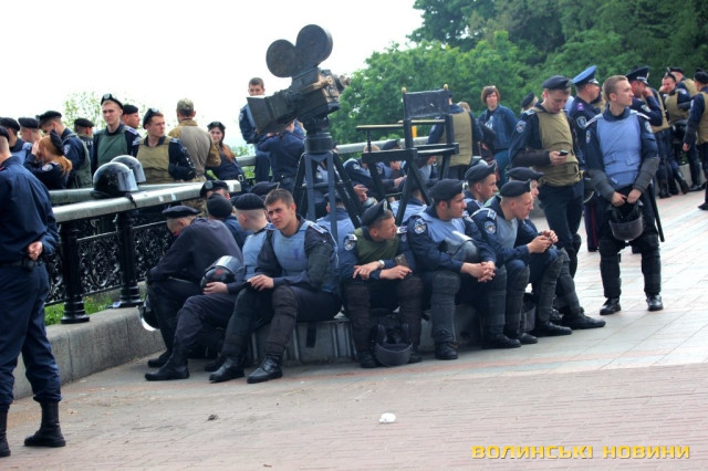 Охорону будинку Уряду, як і парламенту, забезпечувала велика кількість правоохоронців та бійців Нацгвардії. Варто зауважити, що значна частина правоохоронців, які розташовувалися у Маріїнському парку, відверто нудьгувала від спекотного дня – міліціонери намагалися сховатися у затінку та спостерігали за перебігом акції, попиваючи каву чи ласуючи морозивом. Попри те, що дорожній рух протягом декількох годин був заблокований, жоден урядовець не вийшов, аби поспілкуватися із мітингувальниками.