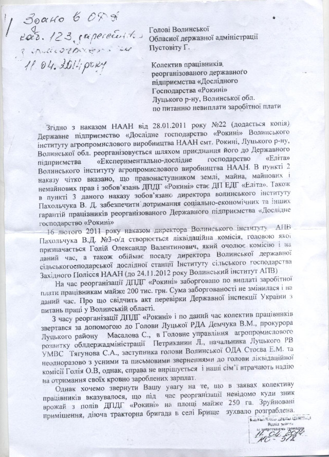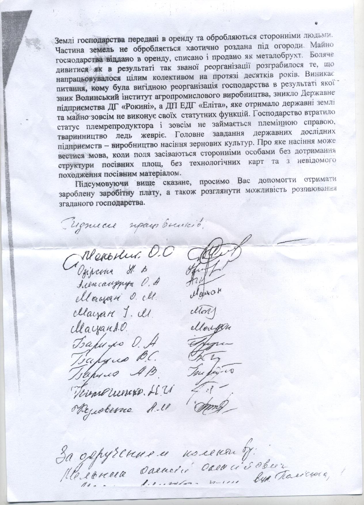 Останнє речення звернення вбило: "Просимо розглянути можливість розпаювання даного гоосподарства". Гвоздецький вирішив собі шмат землі прихопити)))