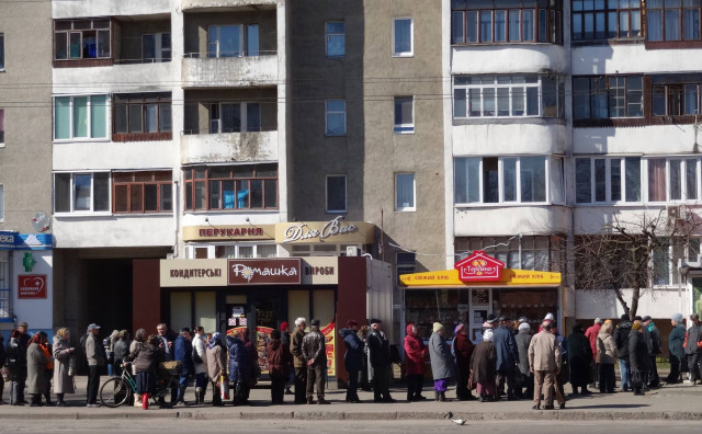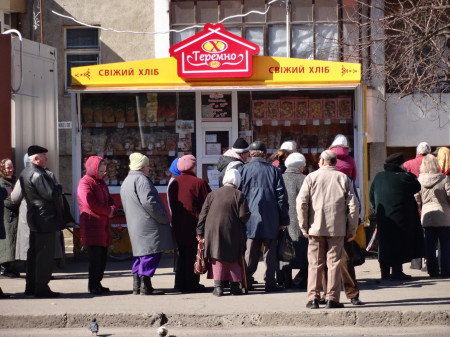 «Черги за хлібом знову повернулися з 90-х. Ще восени вони були маленькі і не так помітні. Але після значного падіння гривні черги за несвіжим хлібом теж виросли», - пише на своїй сторінці лучанин Андрій Михайлов.