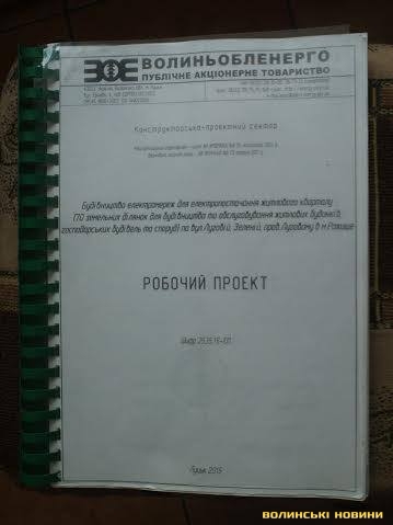 Як з'ясовується з подальшої розмови, у 2014 році Рожищенська міська рада уклада угоду з ПАТ «Волиньобленерго» на розробку робочого проекту «Будівництво електромереж для електропостачання житлового кварталу (72 земельних ділянки для будівництва та обслуговування житлових будинків, господарських будівель та споруд) по вулиці Луговій, Зеленій, провулку Луговому в місті Рожище».Згідно з проектом, розробку якого на той момент оплатила Рожищенська міська рада, кошторисна вартість робіт з електрифікації масиву на березень поточного 2015 року становила 960 тисяч гривень. Усі роботи з електрифікації, відповідно до нормативних актів, які регламентують діяльність ПАТ «Волиньобленерго», мають проводитись за кошти забудовників.