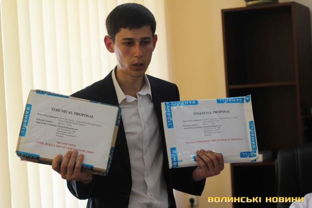 Секретар тендерного комітету ДКП «Луцьктепло» Олександр Алфьоров, першою чергою, перевірив цілісність коробок, надійність упаковки та наявність відповідних штампів про реєстрацію.Також зауважив, що пропозиція кожної компанії містить фінансову та технічну складову. На першому етапі експерти оцінюють лише технічну. І лише після того порівнюватимуть фінансову вигідність співпраці з тим чи іншим підприємством.