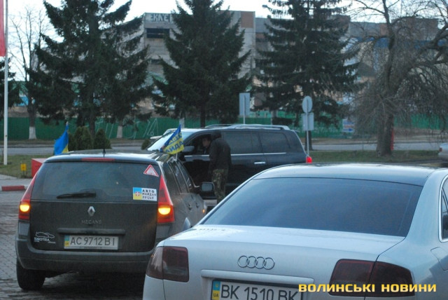 Луцькі автомайданівці блокували одну з заправок бренду «Лукойл», мотивуючи це тим, що ця корпорація є російською.