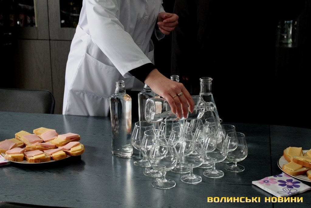 Однак матеріальне становище підприємства – досі нестабільне. Поки що на підприємстві готові розливати горілку до кінця квітня. А ось що буде далі – наразі невідомо. Зі слів Дениса Шмарова, вся подальша робота підприємства залежатиме від реалізації виготовленого товару. Наступного місяця планують відкривати і фірмовий магазин. Відтак, днями волиняни можуть очікувати появи на прилавках «зеленого змія» місцевого виробництва.Продегустувати волинський продукт запропонували і журналістам. Так, акулам пера налили по три види продукту: «чисту» горілку, яка є основою для лікеро-горілчаних виробів, «Поліську» та «Волинську», аби відчути різницю. Самі ж владці від дегустації відмовилися і питали в експериментаторів-журналістів про враження. Так, дегустатори відповіли, що місцевий продукт – набагато м’якший, і має нотки ароматів. З’ясувалося, що «Поліська» має цитрусовий присмак, а до «Волинської» додають ефірну олію аїру, який в народі називають лепехою.