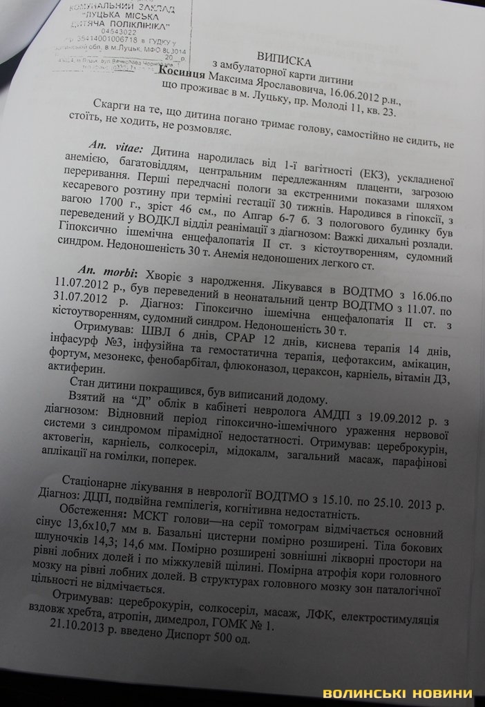 Тисячі дітей страждають подібними хворобами, я теж упродовж багатьох років ставлю свою дитину на ноги, але цього не афішується, це наша сімейна біда. Ми знаємо куди звертатися за допомогою, не мішаючи іншим насолоджуватися щасливим життям. Про цього хлопчика я читала у "Фактах", дивилася по телевізору. Не по цих же публікаціях Палиця виділив гроші на лікування, а за заявою матері. А взяти ось цю виписку із амбулаторної картки дидини, висновок ЛКК - це оприлюднення лікарської таємниці, не думаю, що дитина, коли виросте, одобрятиме такі рекламні дії матері. Дійсно, тут, як мені видається, вже забагато реклами і настільки забагато, що мати начебто радіє, що має змогу світитися у ЗМІ.