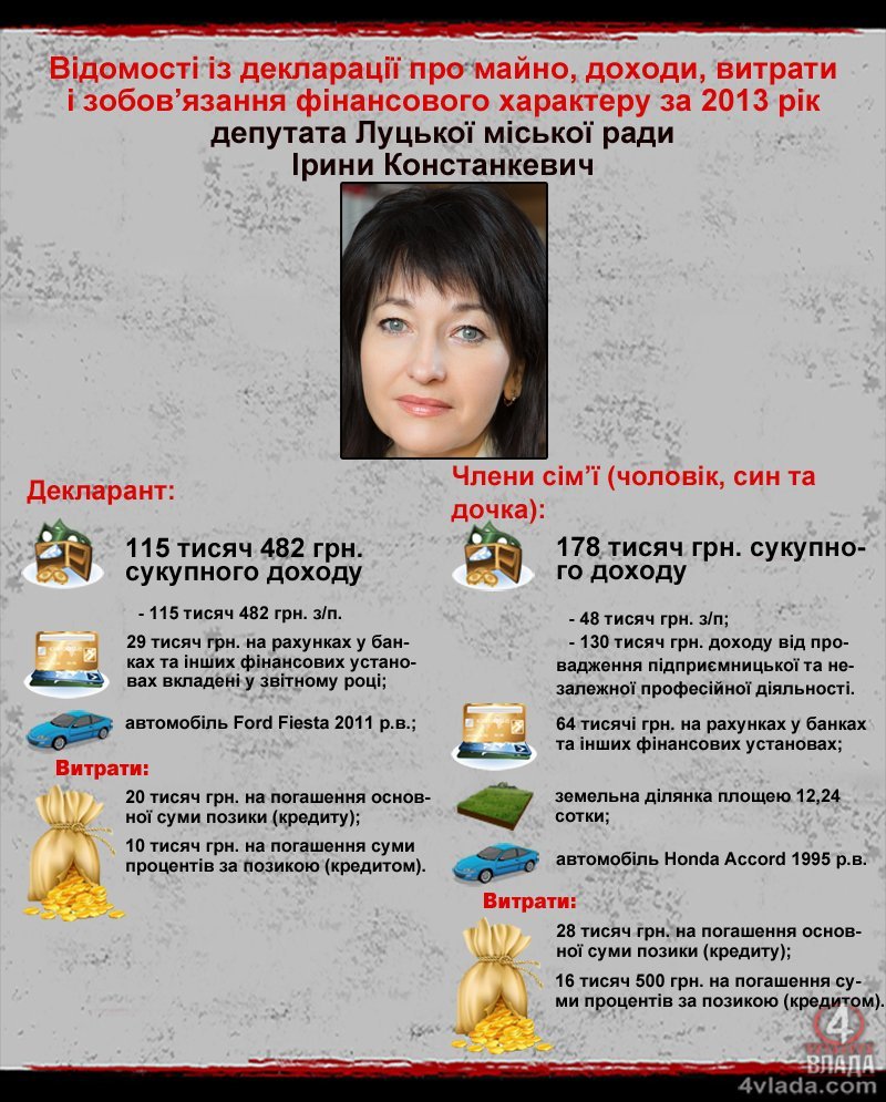 Цікаво, як з такими доходами Констанкевич займалася благочинністю напередодні виборів? Дивно! І чому все припинилось? Проблем в людей побільшало!